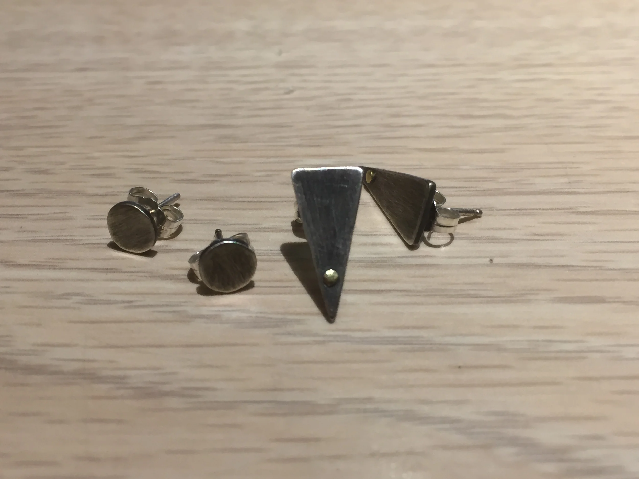 Studded holidays New to the line: lightly brushed and oxidized sterling silver studs. Basic circles - great for both men and women. Geometric studs are punctuated with brass rivets for subtle sparkle and contrast. productAHallDecember 15, 2015studs, silver, rivets1 Comment Pinterest0 0 Likes